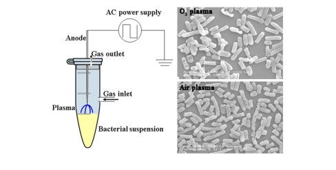 研究人员对不同气体等离子体处理后的水中硝酸根、亚硝酸根及过氧化氢等活性基团含量进行分析,发现硝酸根/亚硝酸根含量与等离子体灭菌能力正相关。通过比较等离子体灭菌效果与相同生成浓度的硝酸根、亚硝酸根、过氧化氢等灭菌效果的差别,研究人员发现溶液中生成的亚硝酸根含量的差别是不同气体等离子体灭菌效果存在差别的主要原因。空气及氮气与氧气的混合气体中,生成的亚硝酸根含量最高,氮气次之,而氧气条件下却不能生成。生成的亚硝酸根在酸性环境下与生成的过氧化氢反应生成强氧化性的过氧化亚硝酸盐,后者可引起细菌细胞膜及DNA的损伤,最终引起细菌的死亡。相关工作发表于等离子体医学领域专业期刊Clinical Plasma Medicine (7-8: 1-8, 2017)。