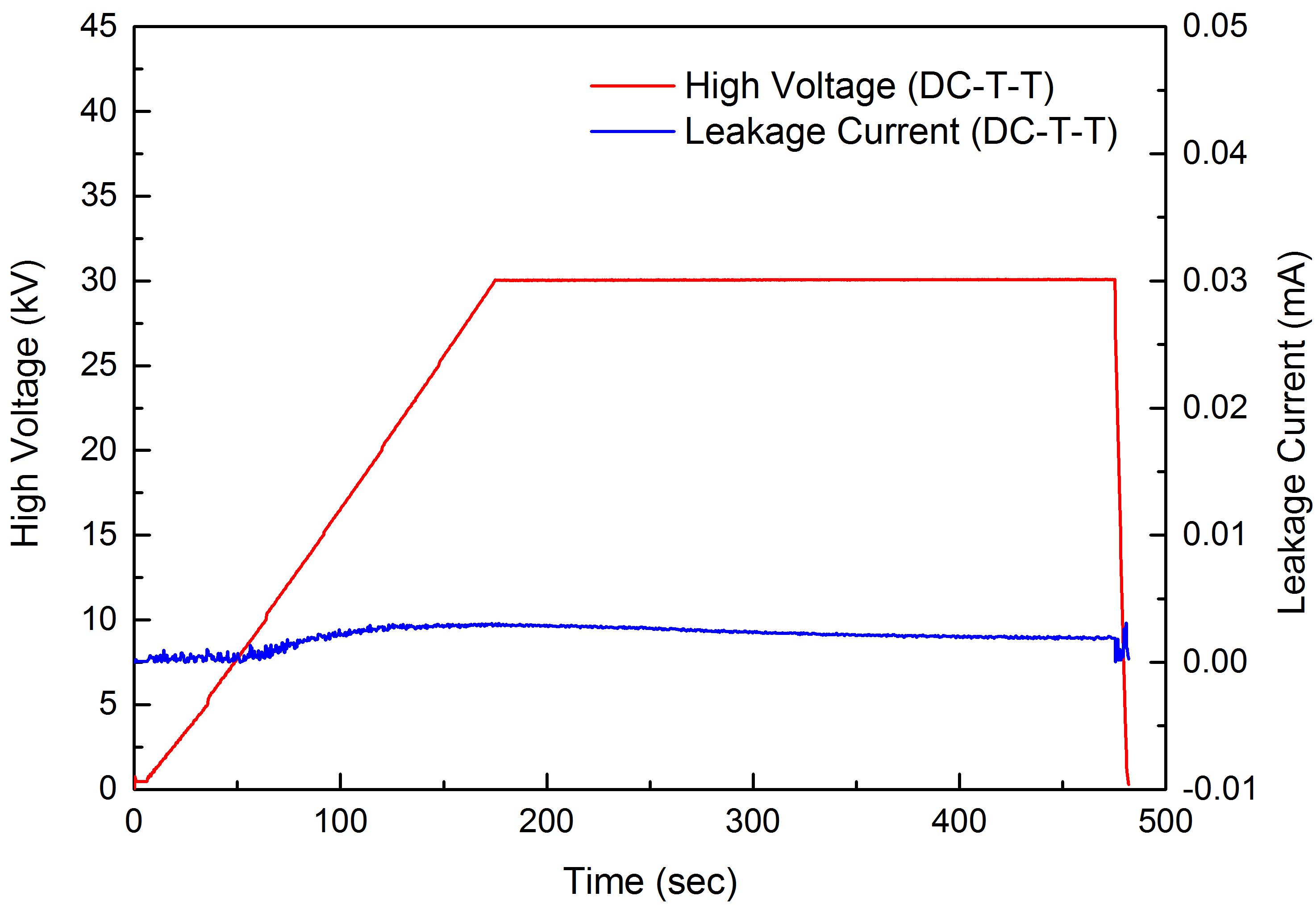ITER PF6线圈尾段模拟件3疲劳测试后匝间绝缘30 kV击穿测试V-I曲线