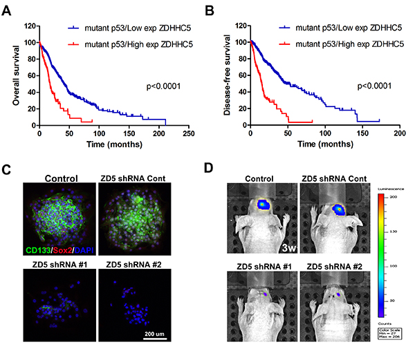ZDHHC5调控p53 mut胶质瘤干细胞的生物学特性