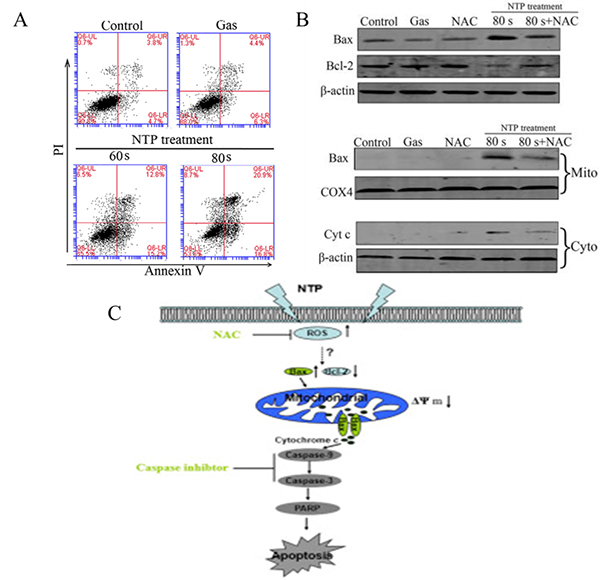 低温等离子体诱导的Hela细胞凋亡的分子机制