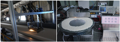 2014年,在河南省中科院科技成果转化项目支持下,科研人员利用近红外漫反射光谱(NIR)定量分析技术建立了尿素中尿素、缩二脲和水分含量模型,并在此基础上研发出生产线上在线检测尿素质量的装置。通过反复调试改进,克服工业现场震动大、化肥移动速度快对测量精度的影响。现场测试显示,该装置运行稳定、检测精准度高、重复性好,为实现尿素产品品质在线检测打下基础。