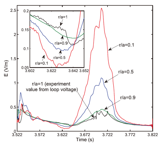 破裂阶段感应电场演化,反映了逃逸电流产生和感应电场径向扩散之间的竞争过程