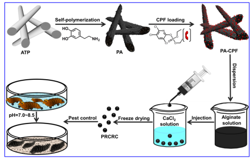 课题组将凹凸棒土、海藻酸盐等天然材料经系列物化改性、结构设计与功能化修饰,制备出一种纳米水凝胶复合材料,并以此为载体研制出控释农药。该农药对于pH具有较强的敏感性,可通过pH调控农药释放,使释放与需求同步,有效提高农药利用率。同时,该材料可显著降低农药光解,延长持效期。该技术具有成本低、效率高、环境友好等优势,为农药减施增效提供了有效技术支撑,对于培育环保农药新产业提供了新途径,具有广阔的应用前景。