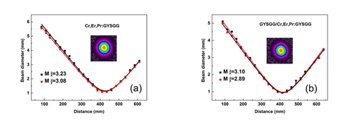 图3 Cr,Er,Pr:GYSGG和键合GYSGG /Cr,Er,Pr:GYSGG晶体的光束质量因子M2