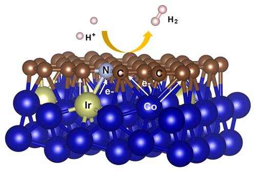 IrCo@NC催化剂结构及电催化析氢反应示意图