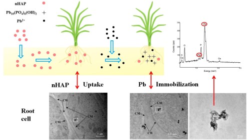 图1. 纳米羟基磷灰石(nHAP)对Pb2+具有较高的吸附能力,抑制Pb从根到向地上部的移动。