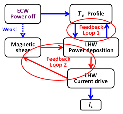 ECRH关闭之后基于低杂波沉积对电子温度分布和磁剪切的参数依赖的反馈机制,该机制解释了能量约束的缓慢降低。