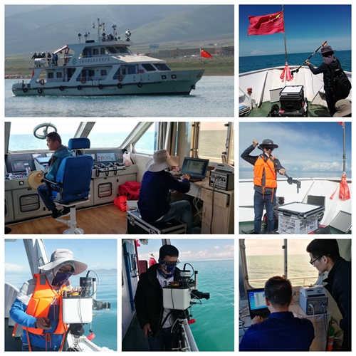 8月11日开始了青海湖试验,试验队由敦煌转场队员与合肥出发队员组成。青海湖船载同步观测在海心山10公里范围内,测量时间从上午10点至下午4点,于卫星过境前后测量湖面红外发射、水温、离水反射率、大气廓线等在轨定标参数。青海湖海拔3200米左右,试验队员克服了高原缺氧等不利条件,发扬连续奋战精神,成功完成4次湖面船载同步观测。