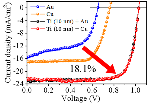 图3. 阴极金属不同的钙钛矿器件电流-电压图