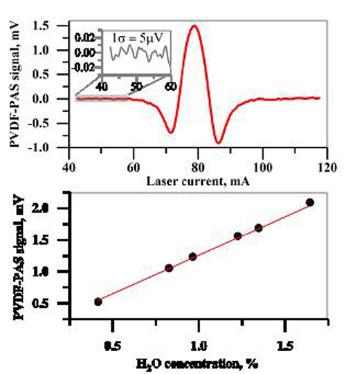 基于PVDF薄膜的H2O光声光谱信号和浓度线性响应