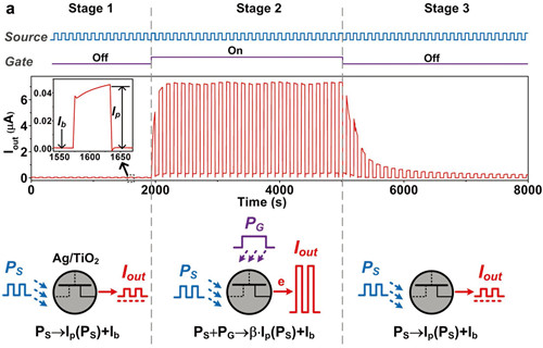 类比于三极管对电信号的放大、开关和调制等功能,这种Ag/TiO2复合薄膜全光输入的晶体管可用于对光电信号的增强、开关和调制(图4)。该项工作为未来光电器件的研制提供了重要参考。
