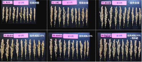 测产结果表明,控失肥全量示范田水稻平均亩产547公斤,较对照田(常规肥全量,482公斤)增产13.5%;控失肥减氮10%示范田水稻平均亩产551公斤,较对照田增产14.3%;控失肥减氮20%示范田水稻平均亩产429公斤,较对照田减产11.0%;而控失肥减氮20%配合生物有机肥示范田水稻平均亩产492公斤,较对照田增产2.1%。上述结果说明,合理减少控失肥投入(减氮10%)可实现减肥不减产;在较大幅度减少控失肥用量的情况下(减氮20%),水稻减产明显,但配合施用有机肥可改善水稻生产力。