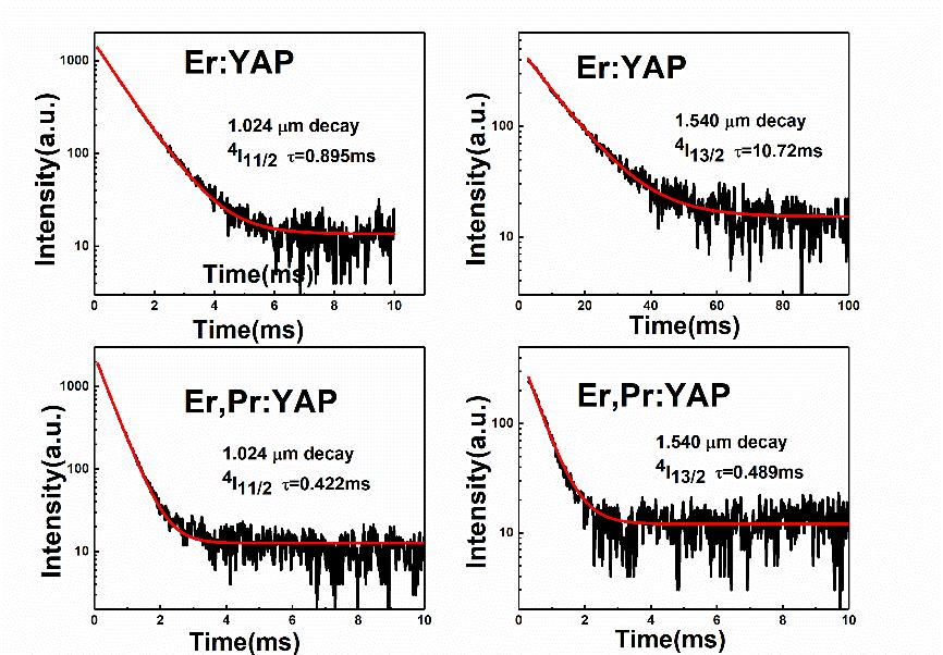 图7 Er:YAP和Er,Pr:YAP晶体的荧光衰减曲线