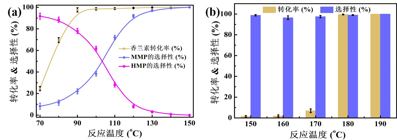 随着化石能源危机日益严峻,开发绿色可再生能源已经刻不容缓,生物质作为一种储量丰富的可再生资源,已成为代替化石能源的“宠儿”,但是由于其含氧量较高,不能直接代替化石燃料。在化学工业上,加氢脱氧(选择性加氢)被公认为是提高生物质燃料品质及获取高附加值化学品最有效的方法。香兰素(3-甲氧基-4-羟基苯甲醛)作为木质素中一种重要的芳香单体,将其转化为含氧量更低的高附加值化学品2-甲氧基-4-甲基苯酚(MMP),已引起广大科研者的兴趣并相继开展了对香兰素选择性加氢的研究工作。目前加氢催化剂活性组分仍依赖于贵金属(Pd, Pt, Au, Ru等),由于其储量低、成本高等原因,严重限制了其规模化应用,因此制备高效稳定且具有选择性的非贵金属催化剂成为当前研究的热点。