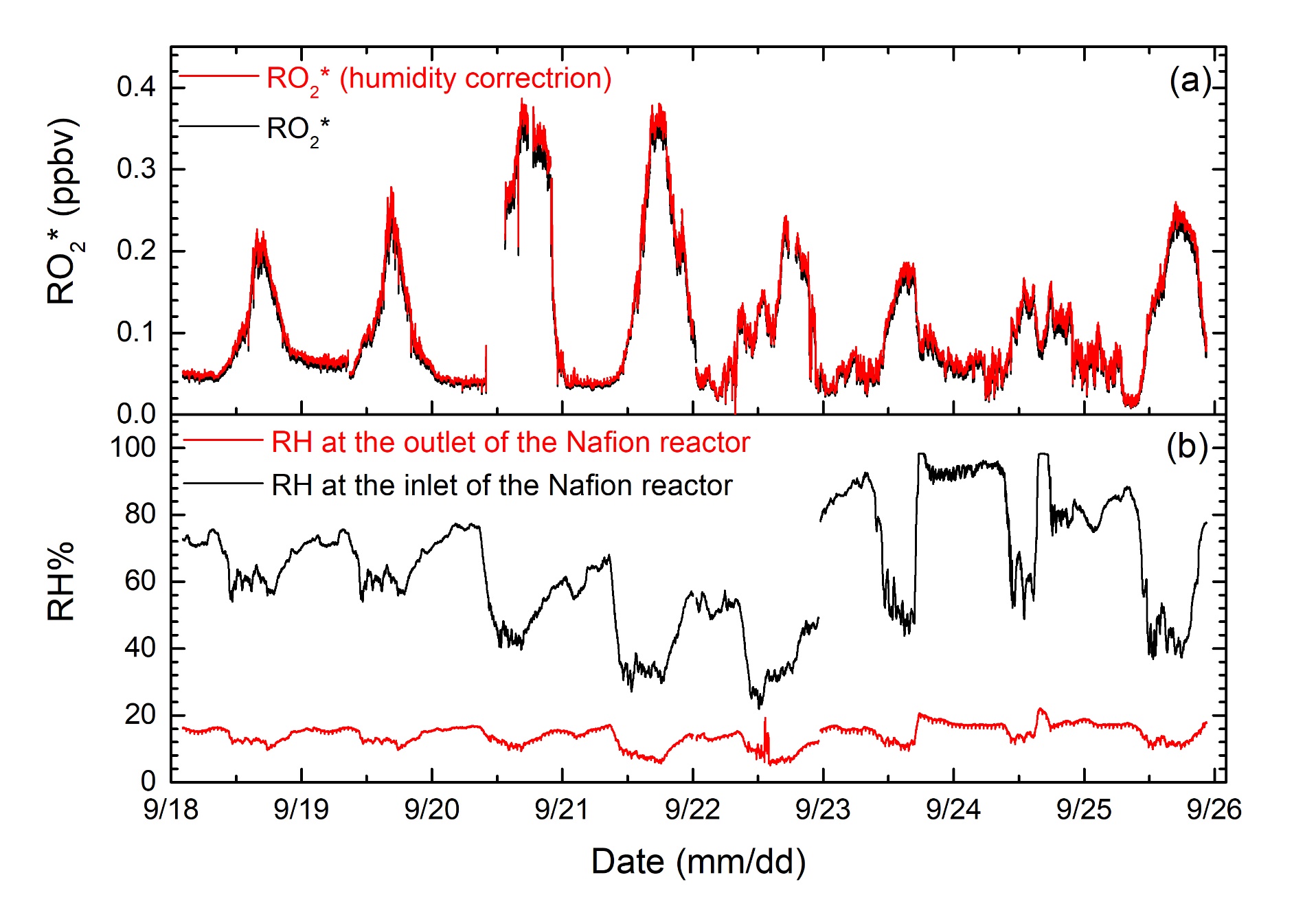 相关研究成果以《基于纳分干燥管的化学放大装置用于实际大气过氧自由基的定量测量》Improved chemical amplification instrument by using Nafion dryer as amplification reactor for quantifying atmospheric peroxy radicals under ambient condition为题发表于Analytical Chemistry 2019, 91, 776–779上(一区)。