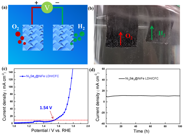 图2.Ni3Se4@NiFe LDH全解水性能测试