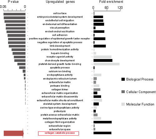 上调基因富集于细胞外基质重塑途径
