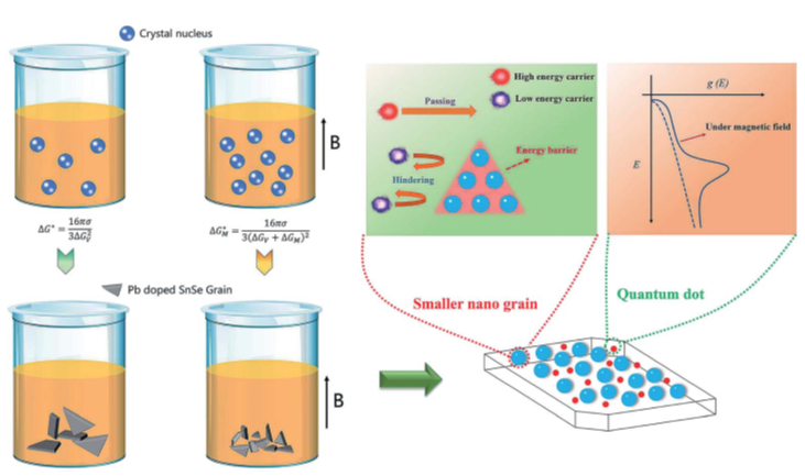 图2 磁场影响晶粒生长及Seebeck系数提升示意图