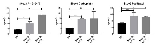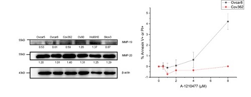 敲低基质金属蛋白酶-19(MMP-19)和基质金属蛋白酶-20(MMP-20)增加细胞药物敏感性,同时降低细胞侵袭能力