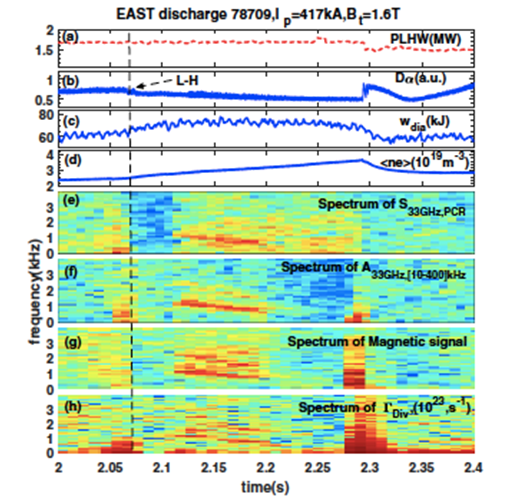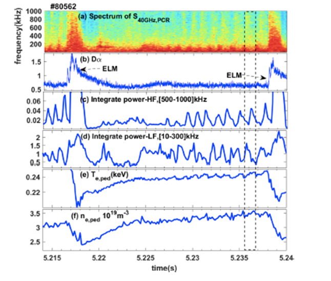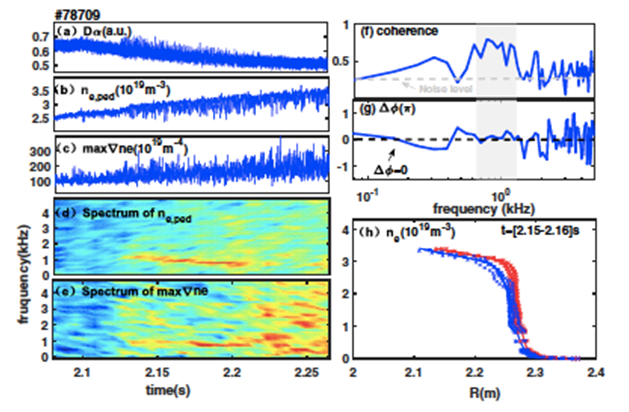 近日,等离子体所微波反射仪诊断组张涛副研究员等在高约束模(H模)台基区湍流研究中取得新进展。研究结果以“A low-frequency axisymmetric oscillation the high-confinement mode pedestal on the EAST tokamak”为题发表于Nuclear Fusion期刊(H.M.Xiang et al 2019 Nucl. Fusion 59 106037)上。