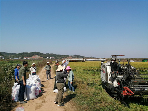 该示范区栽植的水稻品种为优质稻米“中禾优1号”,栽植面积达1000亩。专家组对水稻新型肥料示范区进行机械实打实收测产,现场测定籽粒含水率并折算亩产。2019年,六安水稻新型肥料示范中,利用新型控失复合肥实现了“一次性基施”保障水稻丰产增效的目标。