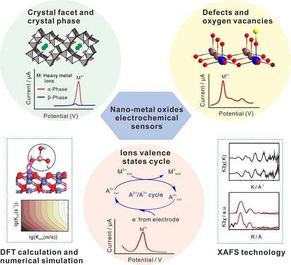 具有特殊表面物理化学性质的金属氧化物纳米材料极大地影响其催化和电分析性能。在电化学检测重金属污染物领域,理解电极修饰材料的结构与性质的关系对于合理设计有效的电分析敏感界面具有重要的意义。然而,目前,缺乏针对具有特殊表面理化性质的纳米金属氧化物对电分析性能的影响及理解其结构与性能关系的全面总结。