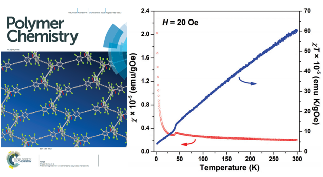 近期,中科院合肥研究院强磁场中心与固体所的科研人员合作,对二维铁磁/反铁磁材料开展了系列研究,在二维磁性材料居里温度提升(室温铁磁碳纳米片)、二维磁性材料类型拓展(二维有机反铁磁聚合物)方面分别取得了进展。相关成果分别发表在Journal of Physical Chemistry C 和 Polymer Chemistry (内封面)期刊上。