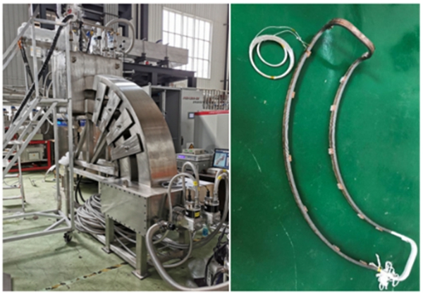 超临界氦强迫单向循环外冷却低温系统具有明显优势,可以保证冷却通道中没有氦气聚集的危险,并且运行温度的选择不受氦沸点的限制。在磁体失超时不会产生大量的氦气,避免了液氦浸泡超导磁体在旋转过程中导致线圈盒内部压力剧增产生的风险隐患,大幅提高了超导二极磁体的运行稳定性。项目团队在该磁体研制和测试中攻克了马鞍形绕制、超临界氦外冷却系统设计等关键技术,90度超导二极磁体在超临界氦外冷却方式下的成功励磁标志着此类超导二极磁体具备了下一步工程化应用的基础。