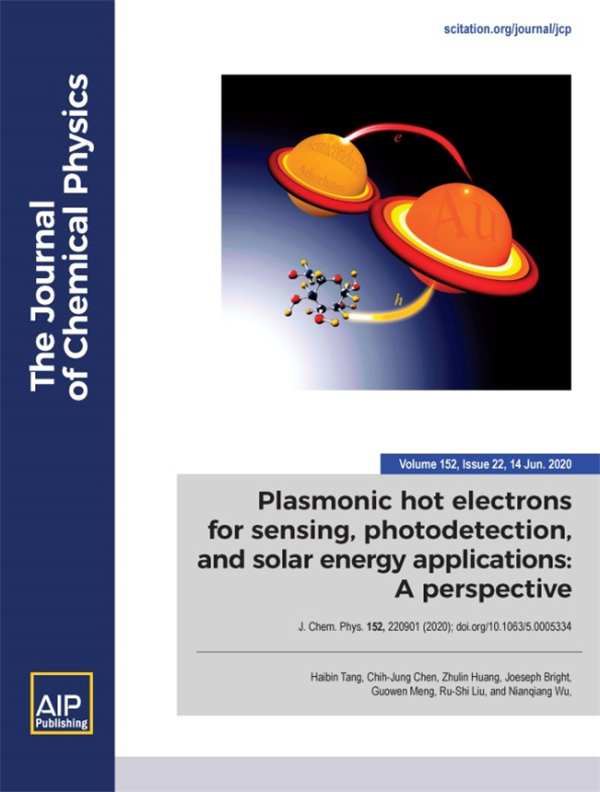 近期,中科院合肥研究院固体所孟国文研究员课题组唐海宾与美国马萨诸塞大学阿默斯特分校吴年强教授、台湾大学刘如熹教授共同合作在The Journal of Chemical Physics杂志上发表了题为“Plasmonic Hot Electrons for Sensing, Photodetection and Solar Energy Applications: A Perspective”的综述文章,详细介绍了表面等离激元热电子研究的三个重要方面: (1)表面等离激元衰减、能级与时间尺度;(2)表面等离激元热电子转移机理; (3)表面等离激元热电子在传感器、光探测、太阳能与光催化应用中涉及的基本科学问题、器件设计原理以及重要进展。该综述被选为期刊的“Featured”和外封面文章(图1)。