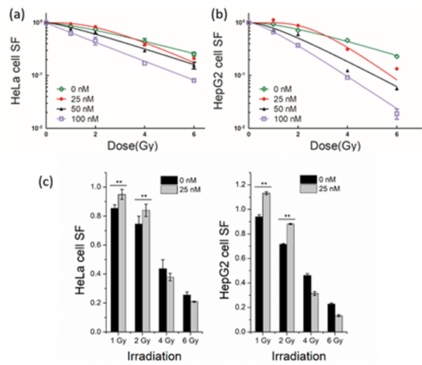 此前,黄青课题组也曾就大剂量TSA对于细胞辐射敏感性的影响进行了详细的研究,发现200 nM TSA处理24小时会显著提高细胞的辐射敏感性,但若药物处理的时间较短(例如6小时)则会降低细胞的辐射敏感性(相关结果发表在Mutation Research上。这些研究说明表观遗传修饰对辐射敏感性影响的复杂性,即它与药物剂量和作用时间密切相关。