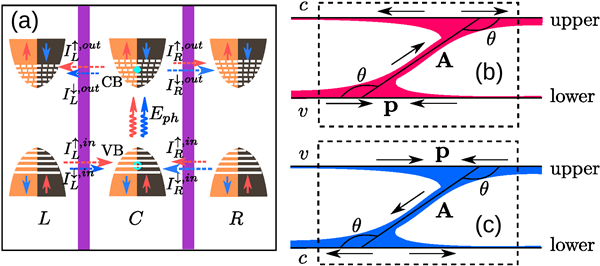 为了克服这一困难,郑小宏研究员课题组基于光学伽伐尼效应产生纯自旋流对结构对称性的要求,提出了一个在二维反铁磁体系中产生纯自旋流的鲁棒方案,即基于光学伽伐尼效应在具有中心反演对称性并且自旋极化具有反对称性的二维反铁磁磁体系中产生纯自旋流。这一全新方案首先被成功应用于具有自旋简并能带结构的锯齿形石墨烯纳米带构建的自旋光电器件中。研究发现,纯自旋流的产生既不依赖光子能量和光的偏振特征,也不依赖电子自旋能带是否劈裂和简并。这表明能带自旋劈裂不是光生纯自旋流的必要条件。此外,通过施加外置电场可以解除器件中电极端的自旋简并特点,所构建的器件能实现自旋电子器件的多种功能:既能产生完全自旋极化电流又能实现纯自旋流。更为重要的是,这种基于光学伽伐尼效应产生纯自旋流的鲁棒方案不仅限于石墨烯纳米带,还可以推广至其它具有自旋极化反演反对称性和结构反演对称性的二维反铁磁体系。这对于发展低功耗的自旋器件设计具有重要的参考意义。