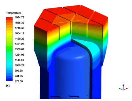 课题组基于液态金属锂冷却剂优异的除热能力,提出了一种液态锂射流冷却的手指型偏滤器新概念,其具有以下优点:(1)液态锂具有优良的传热性能,其导热系数比水高2个数量级,而其密度比水小,对泵的功率要求更低。(2) 液态锂可以在高温下工作(沸点高达1342 ℃),从而获得更高的热效率,且无需担心临界热流密度的限制。(3) 锂与钨合金在低于1370℃的温度下材料相容性良好,可以避免使用铜合金作为热沉材料。经过热工水力、结构力学和磁流体效应等的分析表明,该方案的温度、应力均能维持在材料允许范围内,且磁流体对压降和传热的影响相当有限。该方案为解决聚变堆偏滤器高热负荷的移除问题提供了一种新的选项。