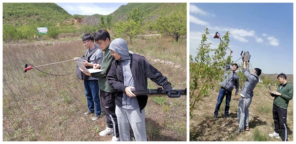 光学遥感中心4名职工和研究生承担了本次试验任务。通过近一周的紧张工作,试验人员顶着烈日,克服山区地形崎岖、交通不便的障碍,顺利将试验设备搬运至试验地点,成功在高分七号过顶时刻获得了草地、油松、果树等多种植被的光谱反射率和叶面积指数数据。相关数据将用于高分七号卫星多光谱相机的大气辐射校正效果验证,并为山区地表反射率反演和叶面积指数反演提供地面验证数据,保证反演产品的精确度和有效性。