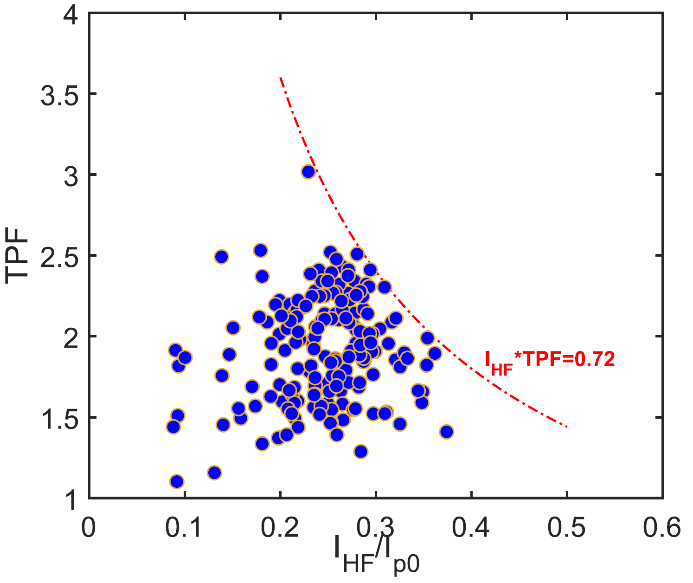 托卡马克等离子体在破裂时,能量在极短的时间内沉积到装置第一壁材料,会直接导致材料损伤,影响装置运行安全。在ITER和CFETR等装置上,由于高储能和大电流等因素,破裂造成的损伤更加严重,破裂期间形成于等离子体表面的晕电流会直接威胁内部部件安全。利用偏滤器部件的电流传感器,课题组详细研究了类ITER钨铜偏滤器和石墨偏滤器晕电流结构特征,指出了垂直位移深度是决定靶板晕电流份额的最主要原因,得到了类ITER偏滤器晕电流实验定标关系(图1),为未来偏滤器设计提供了可靠的实验支撑。
