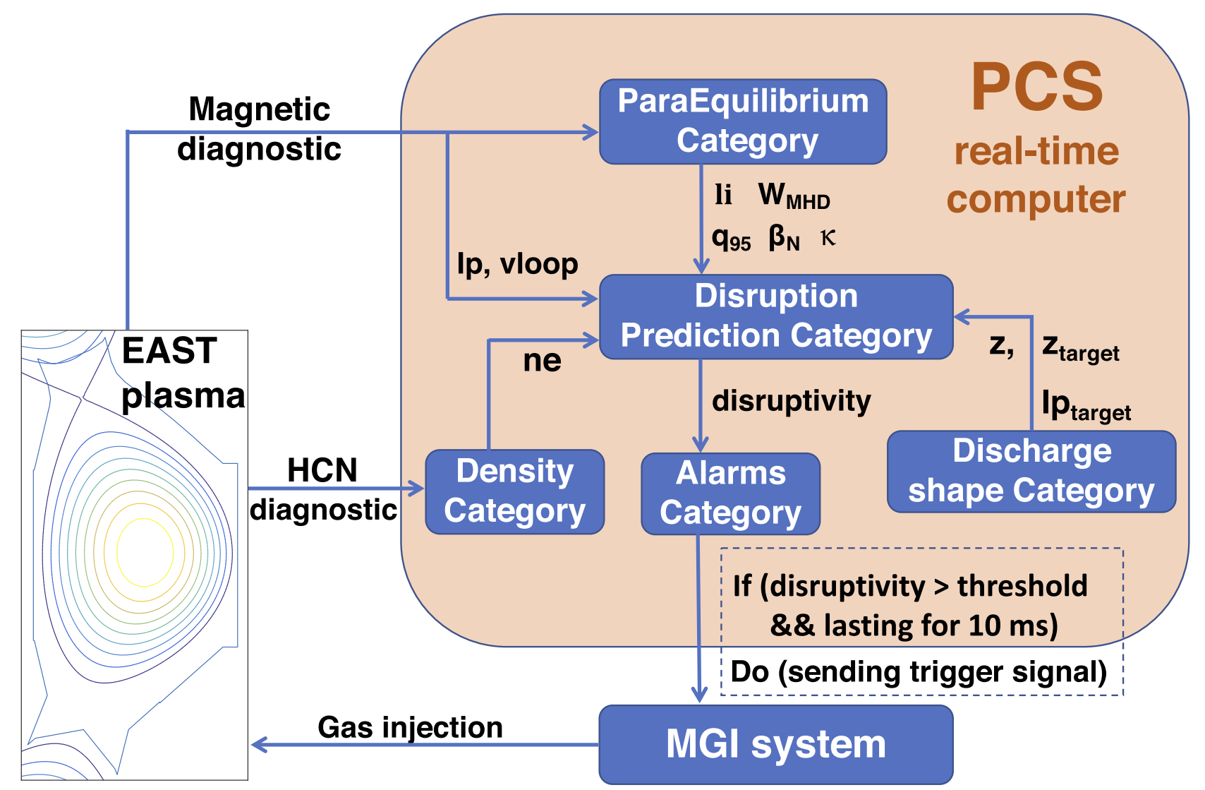 图3:EAST装置包含实时高密度破裂预测模块和MGI 的破裂防护闭环控制系统