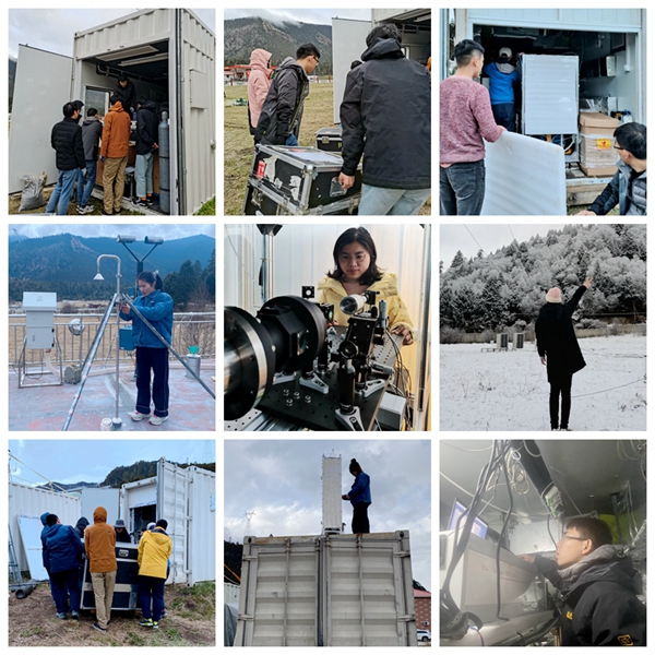 早在2019年,基础科学中心张为俊研究员课题组就已经开始青藏高原的观测工作,科研人员于2019年4月中旬到6月底先后两次前往中国科学院青藏高原所野外台站纳木错多圈层综合观测研究站(海拔4730米),开展了雨季前后两个时间段的野外大气观测实验,验证了自主研发的仪器在青藏高原的测量可靠性。同年的11月和2020年1月,课题组周家成还分别前往中国气象局香格里拉区域大气本底站(海拔3552.7米)和中国科学院珠穆朗玛大气与环境综合观测研究站(海拔4276米)进行了二氧化氮设备安装,开展了长期的台站观测。两次科考工作为青藏高原的大气化学和气候变化研究提供了重要的数据支撑。