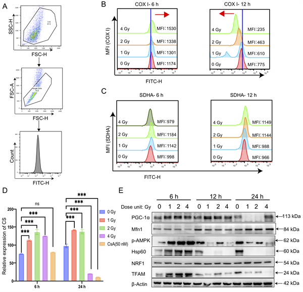 图3:辐射后与线粒体生物发生有关的关键蛋白的分析