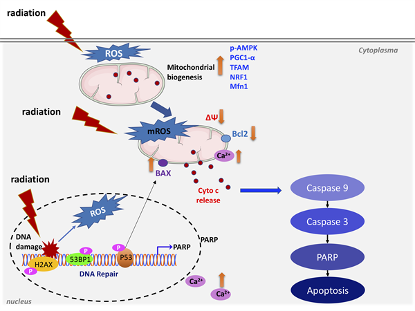 基于对细胞过程的观测,他们发现在辐射凋亡细胞早期阶段,线粒体生物发生有明显增强,即在一定条件下早期阶段细胞线粒体生物发生与后期发生的细胞凋亡具有正相关性,修正了以往笼统认为两者之间负相关性的观念。