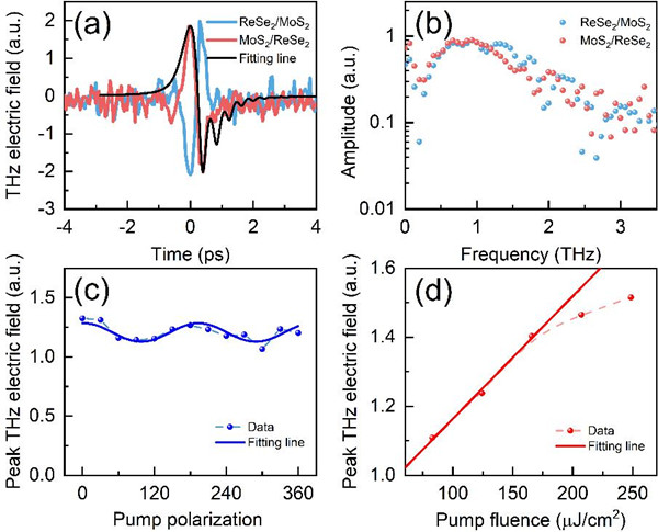 图1. 不同堆叠顺序的MoS2-ReSe2异质结的太赫兹发射光谱。