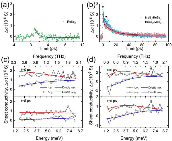 图2. MoS2-ReSe2异质结太赫兹瞬态光电导谱。