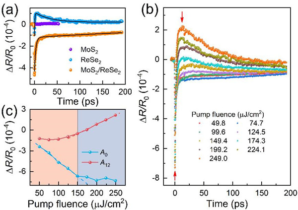 图3. MoS2/ReSe2异质结等飞秒泵浦-探测反射光谱。