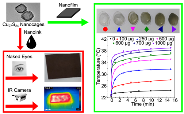 鉴于此,科研人员运用Kirkendall效应合成了中空的硫化铜纳米笼,并结合第一性原理计算和有限元仿真模拟,拟合了纳米笼的光学特性,预测了其良好的太阳光热性能。在此基础上,进一步开发了太阳光热墨水和太阳光热薄膜产品。该工作表明中空的硫化铜纳米笼在太阳光热应用领域具有巨大应用潜力。
