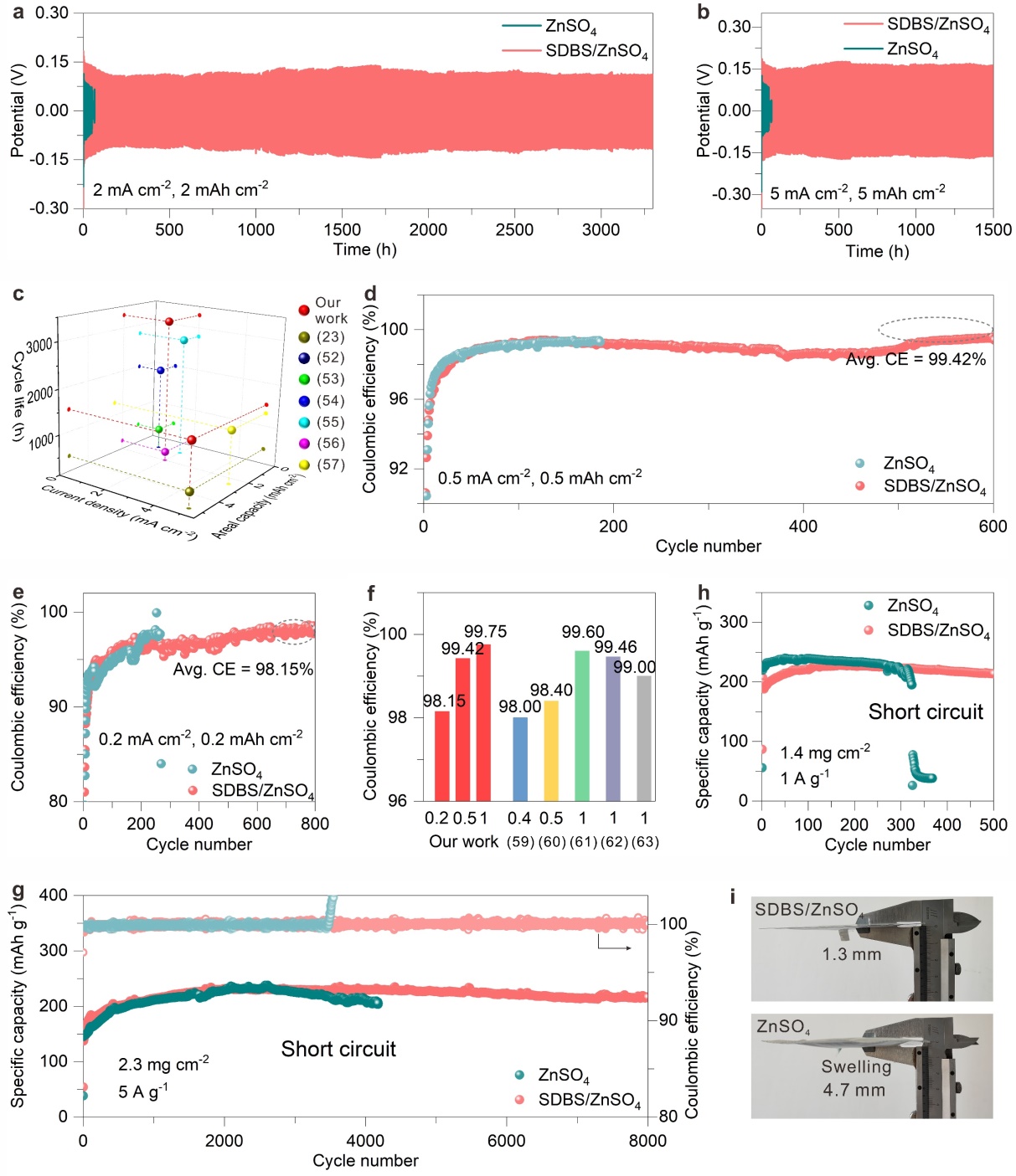 水系锌离子电池(AZIBs)因其高的安全性、可靠性、环境友好性和低成本效益引起了广泛的关注。然而,锌枝晶生长会引起较差的可逆性,严重时会引发电池短路,是推进水系锌离子电池商业化进程的主要障碍。阴离子型表面活性剂作为一种典型的非牺牲性添加剂,在冶金领域作为镀锌的防腐蚀和光滑剂有着悠久的应用历史。因此,选择合适的阴离子型表面活性剂添加剂有望从根本上获得高度稳定和可逆的金属负极。