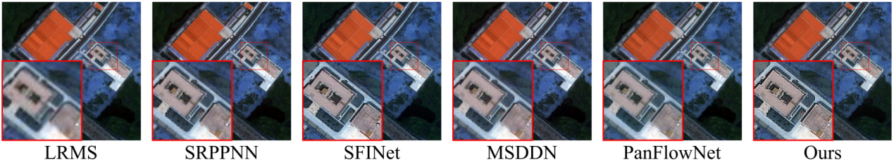 图 2 不同全色锐化模型在全分辨率WorldView-II数据集下可视化结果比较