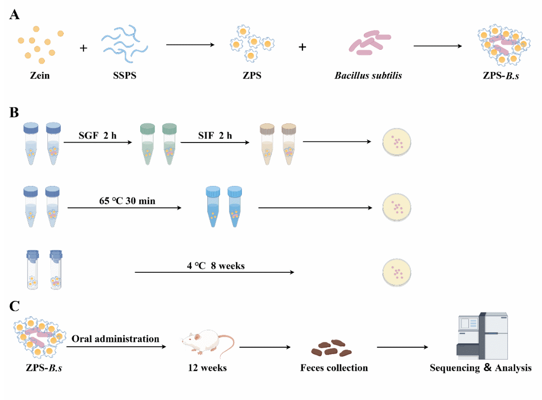 益生菌是可以定植在体内,改变宿主菌群组成的有益活性微生物。科研团队利用玉米醇溶蛋白和可溶性大豆多糖形成复合物,对益生菌进行封装。在模拟胃肠道条件和巴氏杀菌过程中显著了提高益生菌存活率,并在储存条件下也表现出极佳的稳定性。进一步,科研人员通过动物实验发现,大鼠口服用复合物封装的益生菌增加肠道有益菌群丰度、抑制有害菌群生长,达到正向调节肠道菌群组成的目的。研究有助于开发食品级益生菌输送系统,也为设计益生菌功能食品提供了新方法。