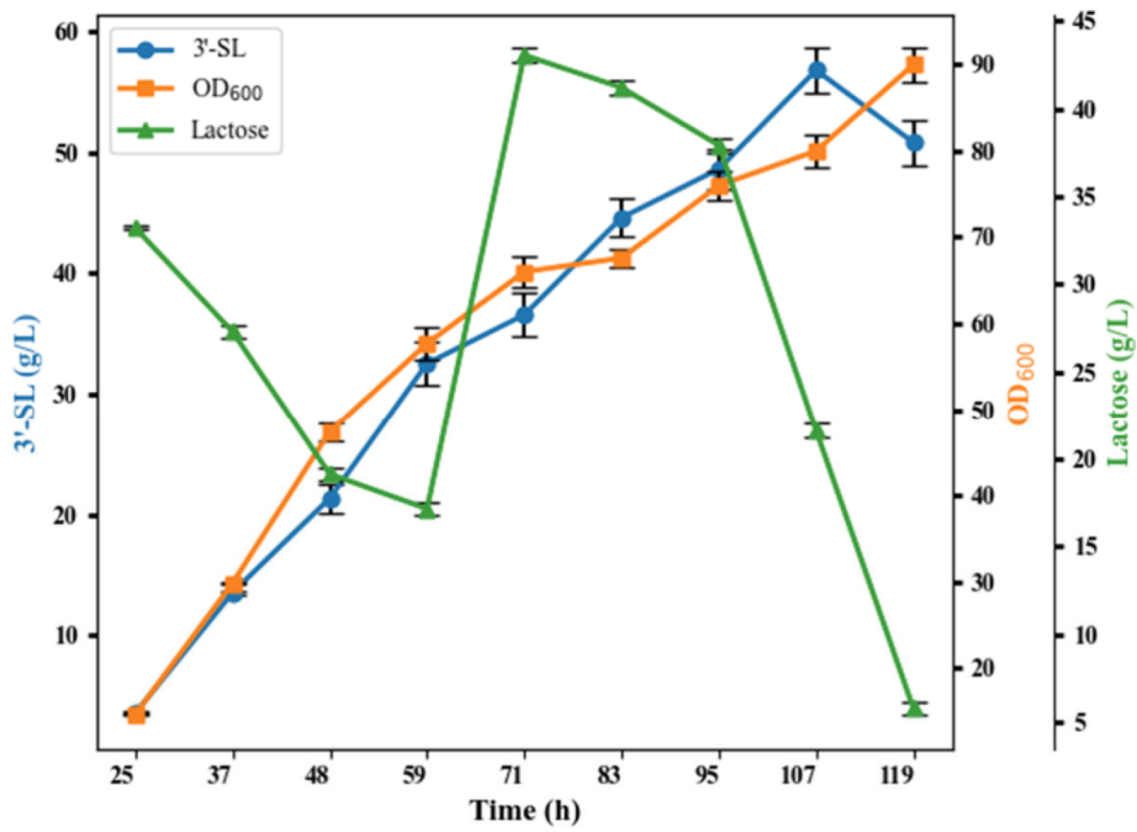 3′-SL是母乳低聚糖的重要组成部分,在促进婴幼儿肠道健康、免疫调节及脑发育等方面发挥关键作用,广泛应用于婴儿配方奶粉和营养保健品领域。然而,传统的3′-SL合成工艺面临成本高、产量低等瓶颈,难以满足市场的规模化生产需求。