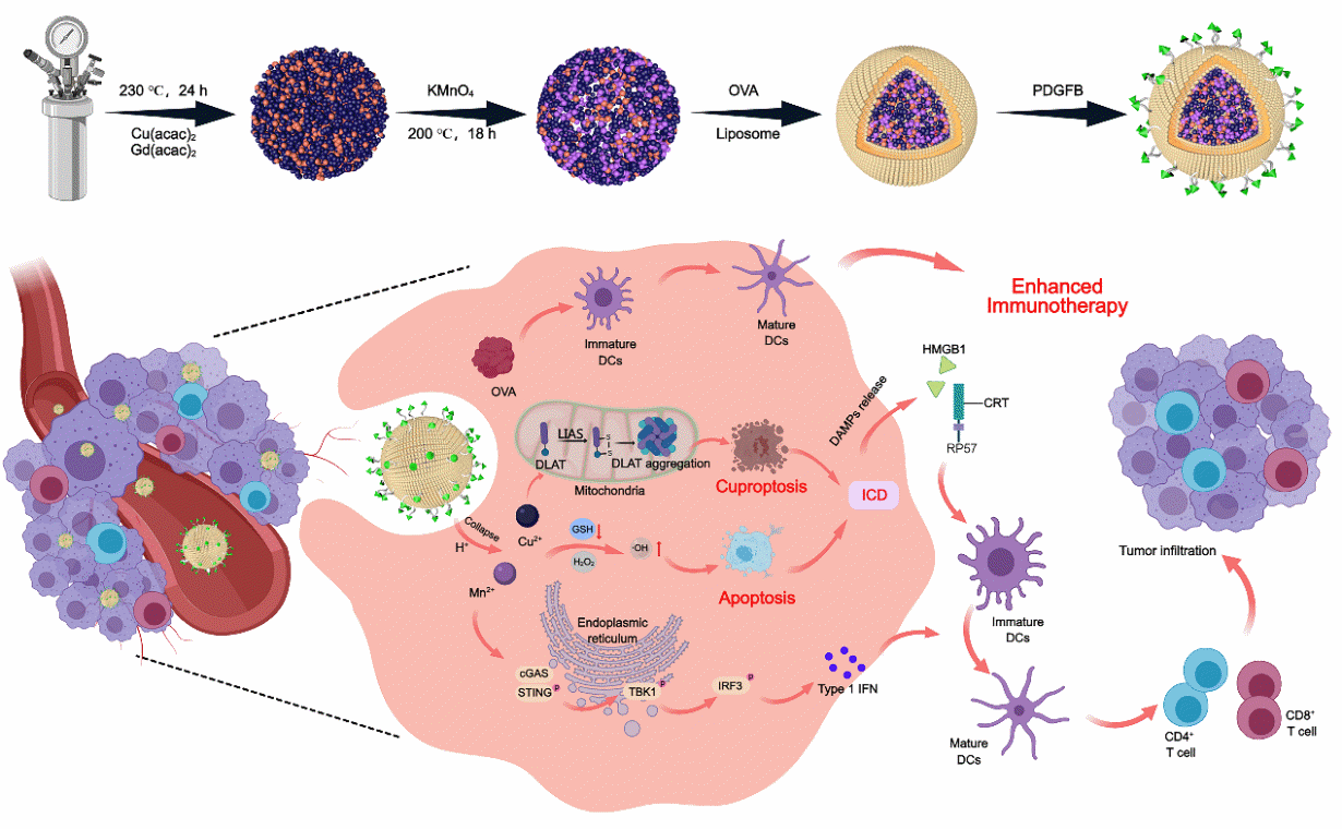 研究表明,pLCGM-OVA借助卵清蛋白的免疫疫苗功效,辅以活性氧和铜死亡诱导肿瘤细胞发生免疫原性细胞死亡,协同增强了抗肿瘤免疫效应,显著抑制了黑色素瘤的生长。此外,pLCGM-OVA还展现出优异的磁共振成像性能,为黑色素瘤的诊断治疗一体化提供了有力工具。