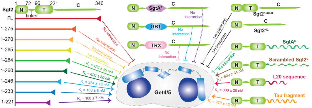 图1. Sgt2的自抑制作用由C端IDR的特定序列决定,且不依赖中间结构域或其他蛋白片段