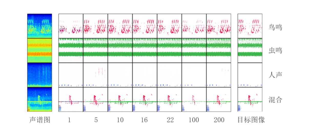 在自然生态系统中,鸟类、昆虫等动物的鸣叫声,以及风声、雨声和人类活动声音共同构成了完整的生态声音景观。由于不同物种鸣叫频率不同,研究人员可通过声音频谱图,从生态声音景观中解析出物种多样性信息。近年来,判别式机器学习方法被广泛应用于声音景观解析,以监测生态系统物种多样性及其时空变化。然而,对于物种丰富、声源复杂的生态系统,难以从声音景观中准确鉴别物种和估算物种多样性,这给基于生态声音景观的生态监测带来了挑战。