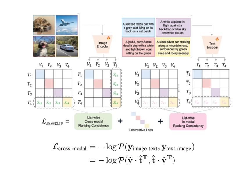 该方法拥有三大技术创新:一是实现跨模态排序一致性,RankCLIP采用Plackett-Luce排序模型,将这一软约束转化为可导损失函数,实现全局排序优化;二是实现模态内排序一致性,除了跨模态关系,RANRankCLIPKCLIP首次将图像与文本各自内部的语义排序纳入训练目标,有效挖掘了模态内的潜在语义结构;三是设计动态权重系数,渐进式权重策略使排序损失在训练初期受噪声影响较大,团队设计动态权重系数,使其在训练过程中从零逐渐增大,既避免干扰初期的对比学习,又在后期充分释放排序信号。
